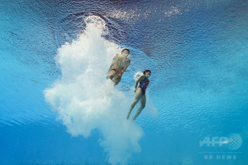 【7月26日 AFP】第16回世界水泳選手権(16th FINA World Championships)は25日、ロシアのカザニ(Kazan)で混合シンクロ10メートル高飛び込み決勝が行われ、中国の司雅杰(Si Yajie)/台暁虎(Tai Xiaohu)組が合計350.88点で金メダルを獲得した。