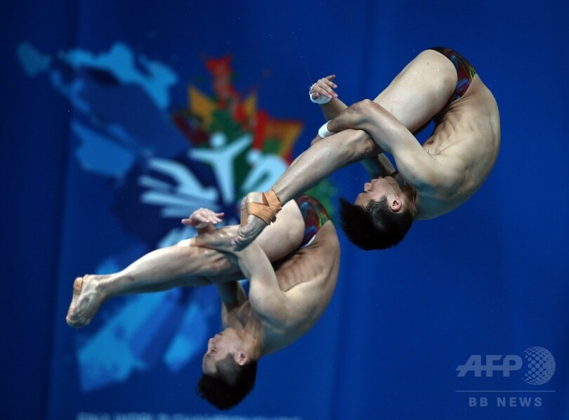 【7月27日 AFP】第16回世界水泳選手権(16th FINA World Championships)は26日、ロシアのカザニ(Kazan)で男子シンクロ10メートル高飛び込み決勝が行われ、中国の除艾森 (Chen Aisen)/林躍(Lin Yue)組が495.72点を記録し、金メダルを獲得した。