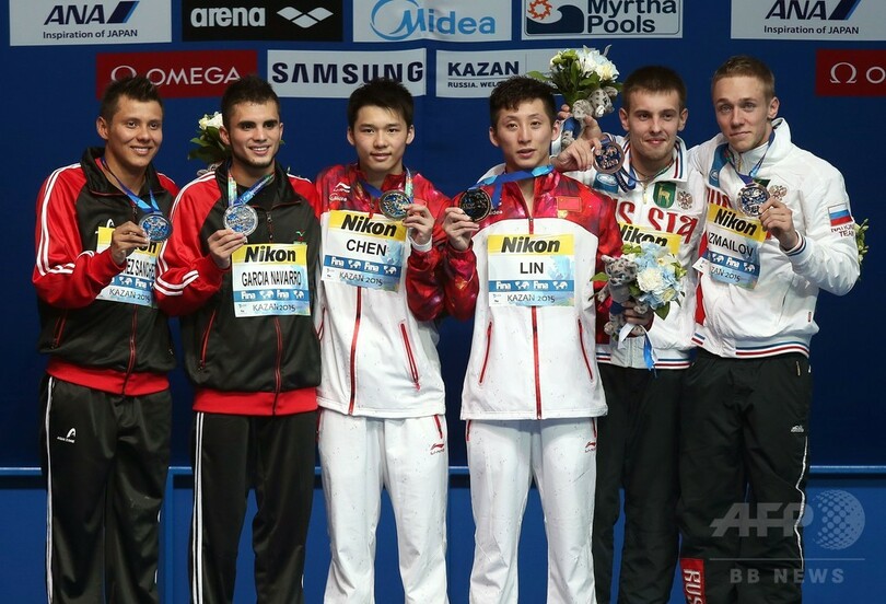 【7月27日 AFP】第16回世界水泳選手権(16th FINA World Championships)は26日、ロシアのカザニ(Kazan)で男子シンクロ10メートル高飛び込み決勝が行われ、中国の除艾森 (Chen Aisen)/林躍(Lin Yue)組が495.72点を記録し、金メダルを獲得した。