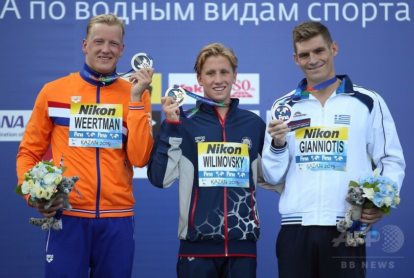 【7月28日 AFP】第16回世界水泳選手権(16th FINA World Championships)は27日、ロシアのカザニ(Kazan)でオープンウオーター男子10キロメートル決勝が行われ、21歳のジョー ダン・ウィリモフスキ(Jordan Wilimovsky、米国)が1時間49分48秒2で優勝し、金メダルに輝いた。