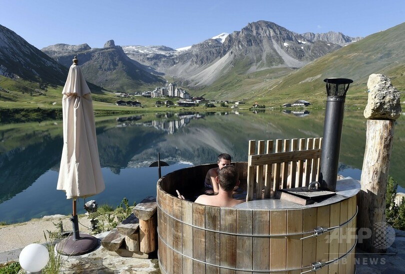 【7月29日 AFP】万年雪の氷河で知られるフランス・アルプス(French Alps)、ティーニュ(Tignes)のスキーリゾートにも夏が到来し、人々は思い思いに日光浴や釣り、屋外ジェットバスなどを楽しんでいる。(c)AFP