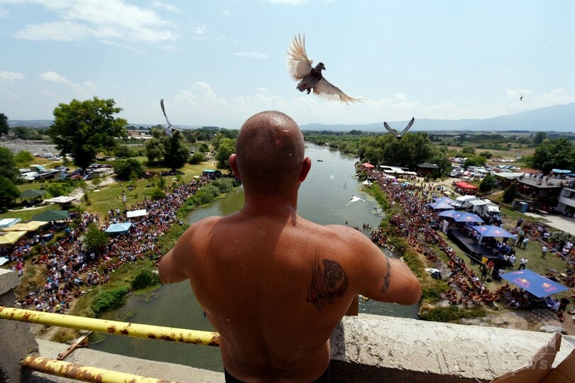 ニュース ライフ 高さ22メートルの橋からジャンプ! コソボで高飛び込み大会 2015年7月28日 12:43 発信地:ジャコバ/コソボ [ ヨーロッパ コソボ ] このニュースをシェア ‹ › ❮ 7/10 ❯ コソボ・ジャコバ近くで行われた高飛び込みの大会で、川へ飛び込む前にハトを飛ばす参加者(2015年7月26日撮影)。(c)AFP/ARMEND NIMANI 画像作成中 ! 【7月28日 AFP】コソボ・ジャコバ(Gjakova)近くに架かる橋で26日、伝統的な高飛び込みの大会が行われ、高さ22メートルの橋の上から、参加者たちが次々と川へ飛び込んだ。(c)AFP ライフ 一覧へ> メディア・報道関係・法人の方向け 写真・動画 購入のお問合せ>