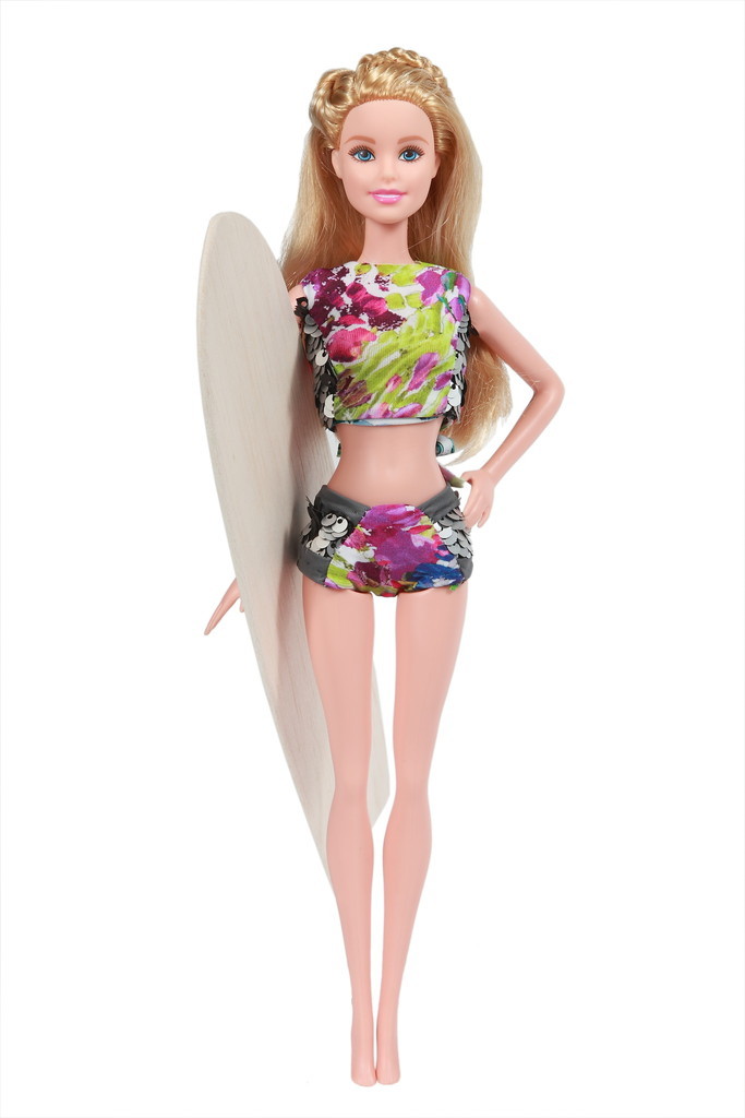 バービーとファッション。それは半世紀以上にわたって続いてきたストーリーだが、今年バービーはまた一つ大きな転機を迎える。「バービー・ファッショニスタ」ラインの登場だ。肌は8色、顔型は14種類、目は18色、ヘアスタイルは22種類、ヘアカラーは23種類で展開される。もう一つ大きな変化は、足首の関節が動かせるようになったこと。これにより、バービーは靴も思い通りに履き替えることができる。
