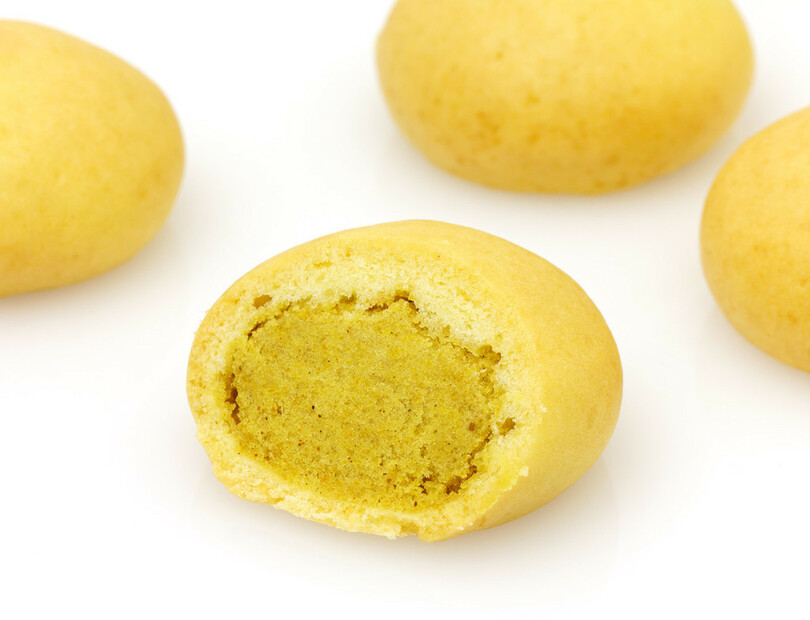 同商品は、白あんに、カレースパイス、白みそ、フルーツチャツネを加えたオリジナルのカレーあんを、マンゴーケーキで包んでふっくらと焼き上げた、和菓子と洋菓子をミックスした新しい和洋菓子だ。あっさりとした味わいの中にも、クミン、カルダモン、コリアンダー、オールスパイスなどのエスニックな香りがアクセントとなり、マンゴーの香りを引き立たせた異次元の美味しさを演出している。2015年夏版はクミンやカルダモンなどのスパイスを挽くところからこだわり、昨年大人気だった初代マハラジャカレーマサラ味を超える仕上がりになっている。