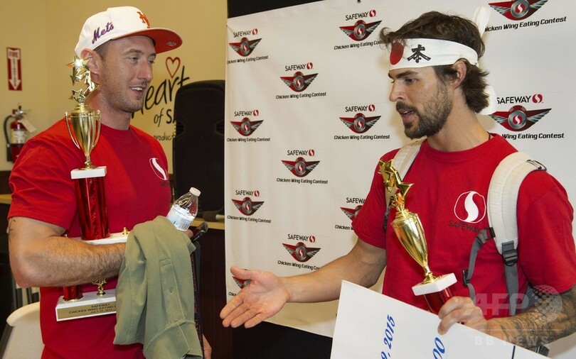 【7月30日 AFP】米首都ワシントン(Washington D.C.)の食料品店セーフウェイ(Safeway)で29日、「全米チキンウイングデー(National Chicken Wing Day)」にちなんだチキンウイングの早食いコンテストが開催された。
