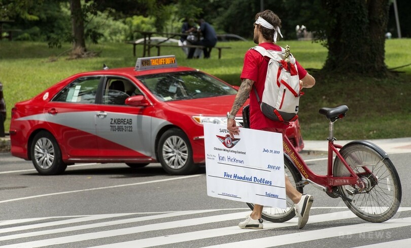 【7月30日 AFP】米首都ワシントン(Washington D.C.)の食料品店セーフウェイ(Safeway)で29日、「全米チキンウイングデー(National Chicken Wing Day)」にちなんだチキンウイングの早食いコンテストが開催された。