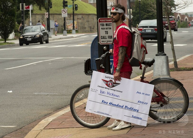 【7月30日 AFP】米首都ワシントン(Washington D.C.)の食料品店セーフウェイ(Safeway)で29日、「全米チキンウイングデー(National Chicken Wing Day)」にちなんだチキンウイングの早食いコンテストが開催された。