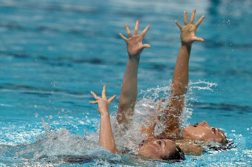 【7月31日 AFP】第16回世界水泳選手権(16th FINA World Championships)は30日、ロシアのカザニ(Kazan)でシンクロナイズドスイミングの女子デュエットフリールーティン(FR)決勝が行われ、ロシアのナターリア・イシェンコ(Natalia Ishchenko)/スベトラナ・ロマシナ(Svetlana Romashina)組が98.2000点で優勝を飾り、イシェンコは今大会で3つめの金メダルを獲得した。