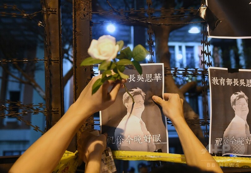 【7月31日 AFP】(一部更新)台湾で、学習指導要領改定が「中国寄り」だと抗議して逮捕された学生1人がその後自殺したことが分かり、数百人のデモ隊が31日未明、教育部長(教育相)の辞任を求めて台北(Taipei)の教育部(教育省)敷地になだれ込んだ。