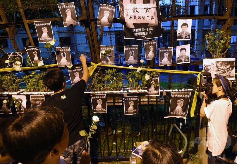 台湾では前週、新指導要領の下で採用が決まった高校の歴史教科書が「中国史観」に基づいていると抗議する学生ら30人と記者3人が教育部の建物に侵入し、逮捕された。警察と報道によると、このとき逮捕された学生の1人、林冠華(Lin Kuan-hua)さん(20)が30日朝、新北市(New Taipei City)の自宅で自殺しているのが見つかった。