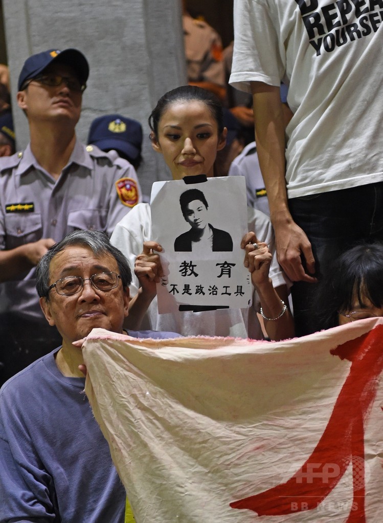 【7月31日 AFP】(一部更新)台湾で、学習指導要領改定が「中国寄り」だと抗議して逮捕された学生1人がその後自殺したことが分かり、数百人のデモ隊が31日未明、教育部長(教育相)の辞任を求めて台北(Taipei)の教育部(教育省)敷地になだれ込んだ。