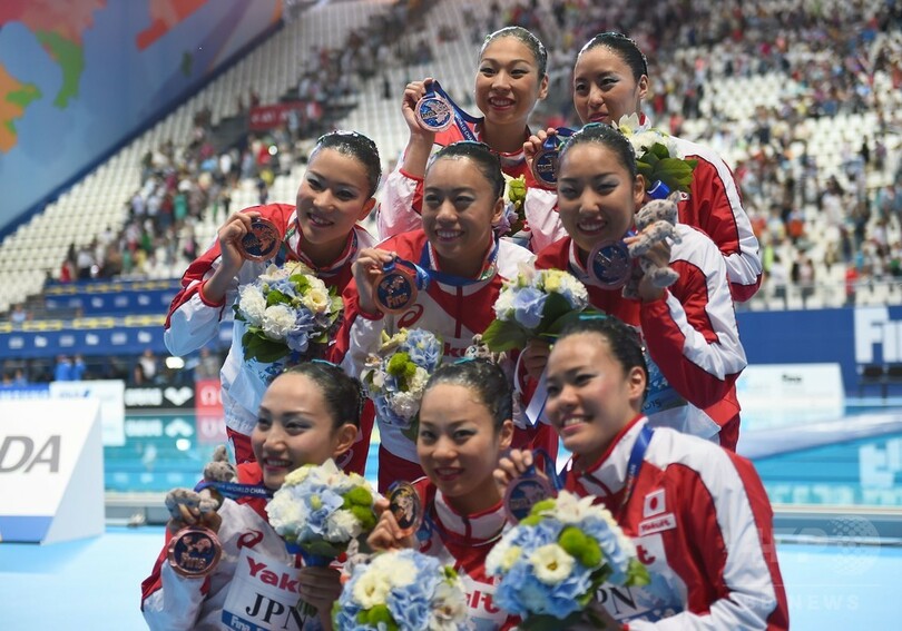 【8月1日 AFP】第16回世界水泳選手権(16th FINA World Championships)は31日、ロシアのカザニ(Kazan)でシンクロナイズドスイミングのチームフリールーティン(FR)決勝が行われ、日本は93.9000点で銅メダルを獲得した。