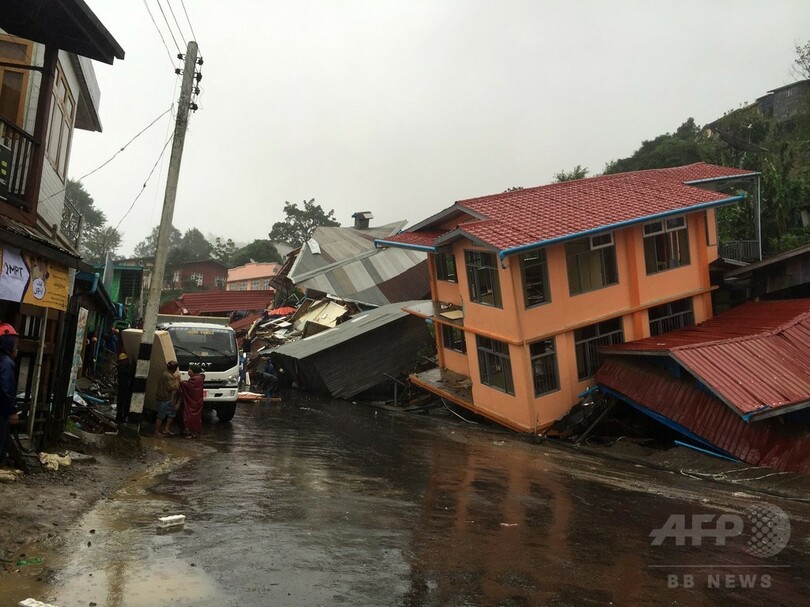 またインドPTI通信(Press Trust of India)によると、ミャンマー西部のチン(Chin)州と国境を接するインドのマニプール(Manipur)州チャンデル(Chandel)では、降り続く雨の影響で土砂崩れが発生し、少なくとも20人が死亡した。(c)AFP