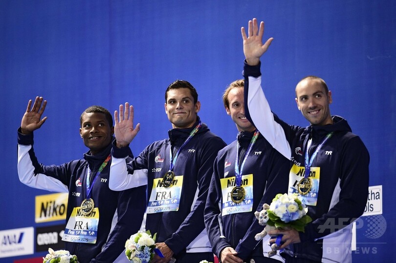 【8月3日 AFP】第16回世界水泳選手権(16th FINA World Championships)は2日、ロシアのカザニ(Kazan)で競泳男子4×100自由形リレー決勝が行われ、フランスが3分10秒74で同種目連覇を達成した。