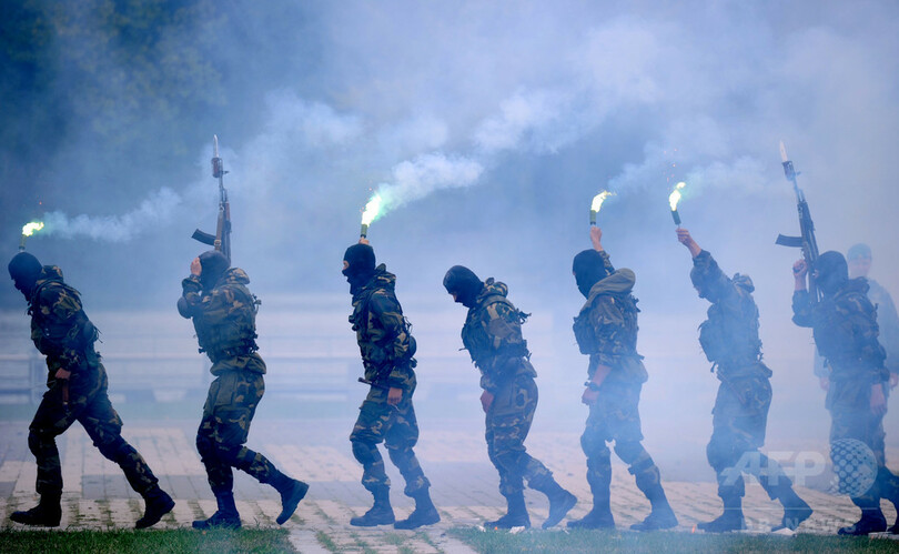 ニュース ライフ こぼれ話 燃える瓦も粉砕! ベラルーシ「空挺部隊の日」 2015年8月3日 15:24 発信地:ミンスク/ベラルーシ [ ロシア・CIS ベラルーシ ] このニュースをシェア ‹ › ❮ 5/5 ❯ ベラルーシの首都ミンスクで、「空挺部隊の日」を祝うパフォーマンスに臨む同国軍兵士(2015年8月1日撮影)。(c)AFP/SERGEI GAPON 画像作成中 ! 【8月3日 AFP】ベラルーシの首都ミンスク(Minsk)で1日、「空挺部隊の日(Paratroopers' Day)」のイベントが開催され、同国の兵士らによるパフォーマンスが披露された。(c)AFP ライフ 一覧へ> メディア・報道関係・法人の方向け 写真・動画 購入のお問合せ>