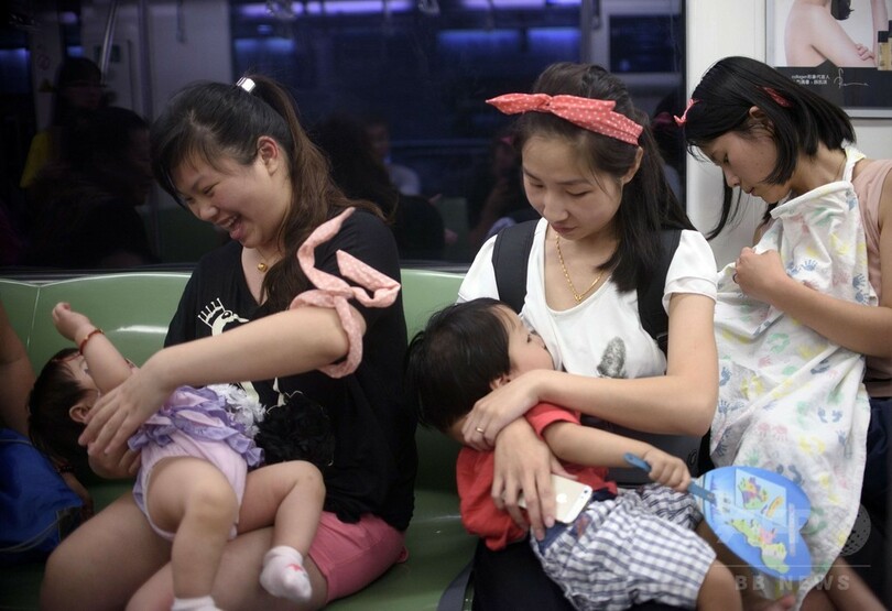 フィリピンでは毎年8月を母乳育児啓発月間とし、「母乳育児国家」を目指している。コロンビア・アンティオキア(Antioquia)州の州都メデジン(Medellin)では、母乳による乳児の健康促進を奨励する大規模なイベントが行われ、300人以上の母親が子どもを連れて参加した。中国では授乳育児と仕事の両立への支援を訴える取り組みとして、約20人の母親たちが地下鉄の車内で授乳を行った。(c)AFP