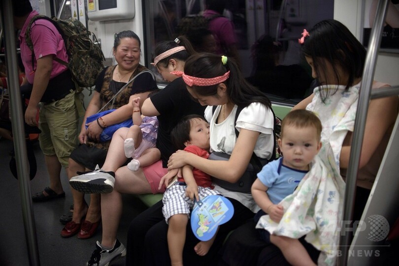 フィリピンでは毎年8月を母乳育児啓発月間とし、「母乳育児国家」を目指している。コロンビア・アンティオキア(Antioquia)州の州都メデジン(Medellin)では、母乳による乳児の健康促進を奨励する大規模なイベントが行われ、300人以上の母親が子どもを連れて参加した。中国では授乳育児と仕事の両立への支援を訴える取り組みとして、約20人の母親たちが地下鉄の車内で授乳を行った。(c)AFP