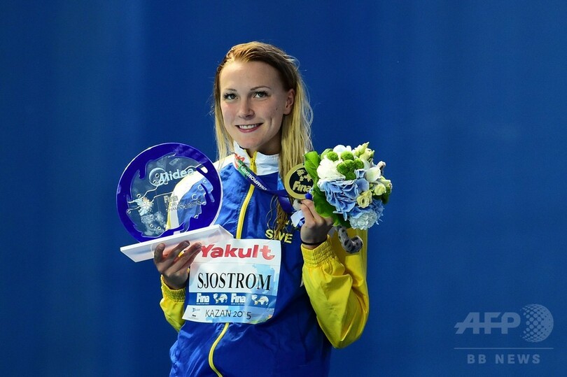 【8月4日 AFP】第16回世界水泳選手権(16th FINA World Championships)は3日、ロシアのカザニ(Kazan)で競泳女子100メートルバタフライ決勝が行われ、サラ・ショーストレム(Sarah Sjostrom、スウェーデン)は前日に自身が樹立した世界記録を更新し、金メダルに輝いた。