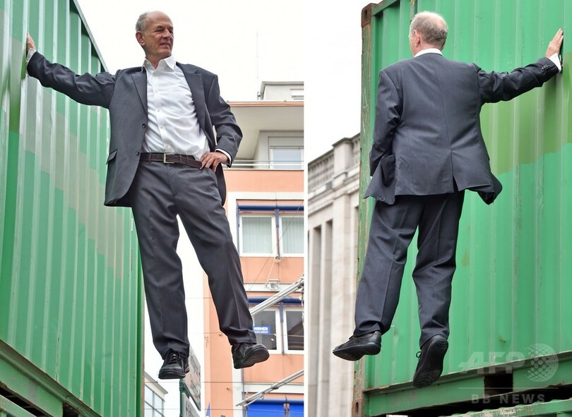 【8月4日 AFP】ドイツ南西部カールスルーエ(Karlsruhe)市内全域で開催中の建設現場アートの展覧会「The City is the Star Art at the Construction Site」で1日、同じ姿勢で静止するパフォーマンスで知られるドイツ人アーティスト、ヨハン・ロービア(Johan Lorbeer)氏が、片手をコンテナに添えて空中浮遊するパフォーマンスを披露した。同展覧会の会期は9月27日まで。(c)AFP