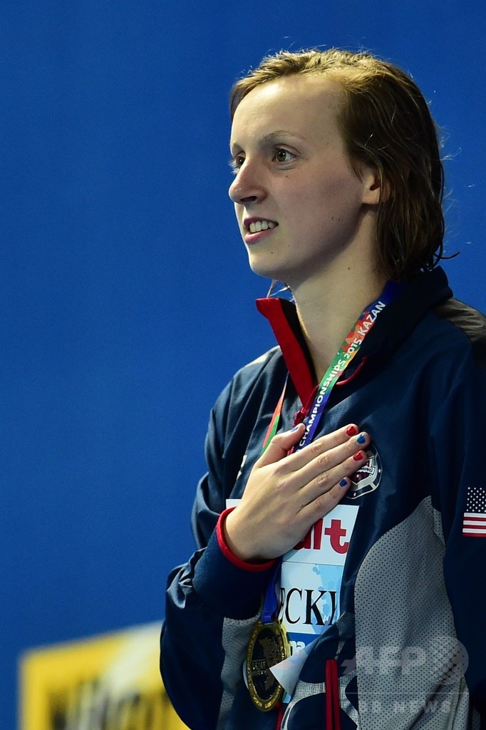 【8月6日 AFP】第16回世界水泳選手権(16th FINA World Championships)は5日、ロシアのカザニ(Kazan)で競泳女子200メートル自由形決勝が行われ、ケイティ・レデッキー (Katie Ledecky、米国)が今大会3個目の金メダルに輝き、歴史的快挙に王手をかけた。