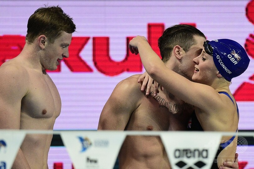 【8月6日 AFP】第16回世界水泳選手権(16th FINA World Championships)は5日、ロシアのカザニ(Kazan)で競泳混合4×100メートルメドレーリレー決勝が行われ、英国が3分41秒71の世界記録で金メダルを獲得した。