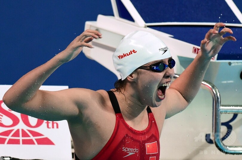 【8月7日 AFP】第16回世界水泳選手権(16th FINA World Championships)は6日、ロシアのカザニ(Kazan)で競泳女子50メートル背泳ぎ決勝が行われ、中国の傅園慧(Fu Yuanhui、フ・エンケイ)が27秒11で金メダルを獲得した。