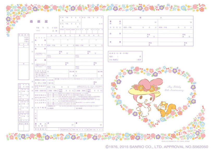 【8月7日 MODE PRESS WATCH】デザイン婚姻届の通販サイト「婚姻届製作所」は、「サンリオ(Sanrio)」の人気キャラクター「ハローキティ」「マイメロディ」「リトルツインシスターズ」をデザインした全12種類の婚姻届けを発売した。