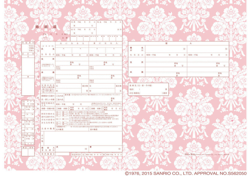 実際に使える!ハローキティやマイメロデザインした12種類の婚姻届発売へ