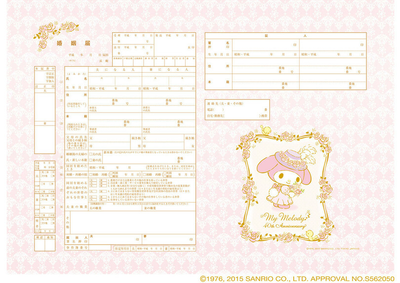 実際に使える!ハローキティやマイメロデザインした12種類の婚姻届発売へ