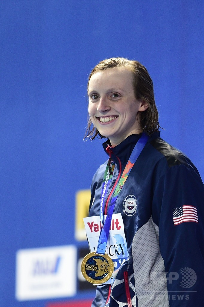 【8月9日 AFP】第16回世界水泳選手権(16th FINA World Championships)は8日、ロシアのカザニ(Kazan)で競泳女子800メートル自由形決勝が行われ、ケイティ・レデッキー(Katie Ledecky、米国)が世界新記録をたたき出し、今大会の自由形で4冠を果たすと、5つめの金メダルを獲得した。