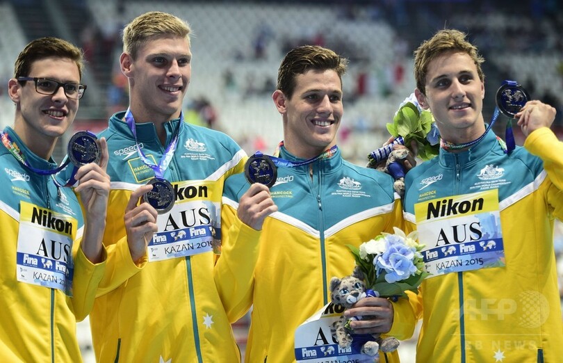 【8月10日 AFP】第16回世界水泳選手権(16th FINA World Championships)は9日、ロシアのカザニ(Kazan)で競泳男子4×100メートルメドレーリレー決勝が行われ、米国が3分29秒93で優勝した。
