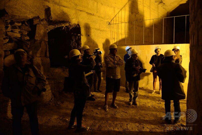 【8月11日 AFP】仏パリ(Paris)南東部に位置するバンセンヌの森(Bois de Vincennes)公園の地下には、採石場の跡地が広がっている。今回報道陣向けに公開されたこの採石場は、パリで建設に使う石を採掘するために19世紀末まで使われていた。(c)AFP