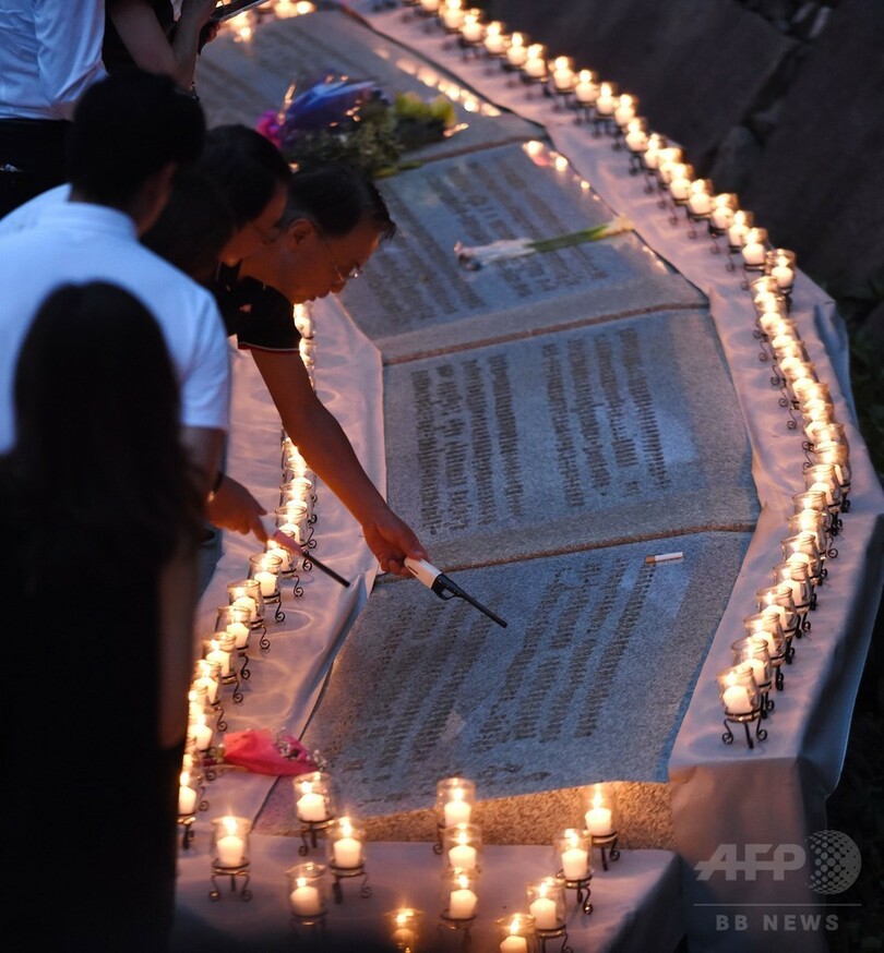 【8月12日 AFP】(写真追加)520人が犠牲となった日本航空(Japan Airlines)ジャンボ機の墜落事故から30年となった12日、航空機が墜落した群馬県上野村で追悼式典が行われ、遺族らがろうそくに火をともした。また、数百人が墜落現場の山間部に登り、犠牲者を追悼した。(c)AFP