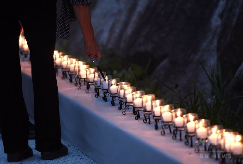 【8月12日 AFP】(写真追加)520人が犠牲となった日本航空(Japan Airlines)ジャンボ機の墜落事故から30年となった12日、航空機が墜落した群馬県上野村で追悼式典が行われ、遺族らがろうそくに火をともした。また、数百人が墜落現場の山間部に登り、犠牲者を追悼した。(c)AFP