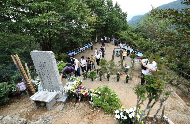 【8月12日 AFP】(写真追加)520人が犠牲となった日本航空(Japan Airlines)ジャンボ機の墜落事故から30年となった12日、航空機が墜落した群馬県上野村で追悼式典が行われ、遺族らがろうそくに火をともした。また、数百人が墜落現場の山間部に登り、犠牲者を追悼した。(c)AFP