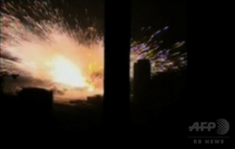 微博に投稿された映像には、火の玉が上空に飛び、少なくとも2回の爆発が起きた様子が写っている。新華社によると、爆発による衝撃波は数キロメートル先まで感じられたという。(c)AFP