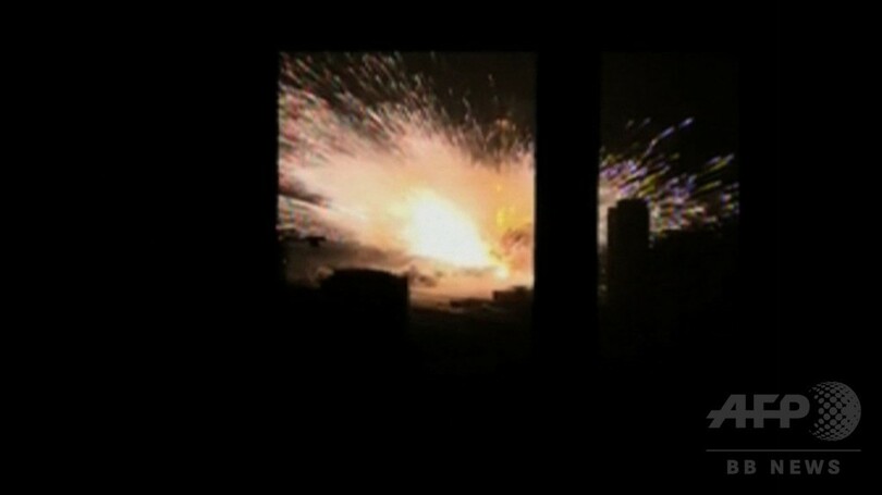 微博に投稿された映像には、火の玉が上空に飛び、少なくとも2回の爆発が起きた様子が写っている。新華社によると、爆発による衝撃波は数キロメートル先まで感じられたという。(c)AFP