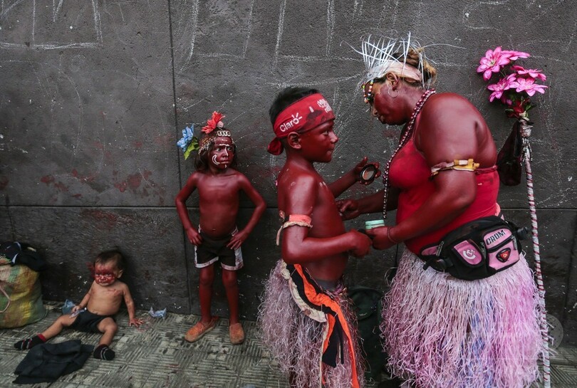 ニカラグアの「聖ドミニコ祭」、全身真っ赤にペイント