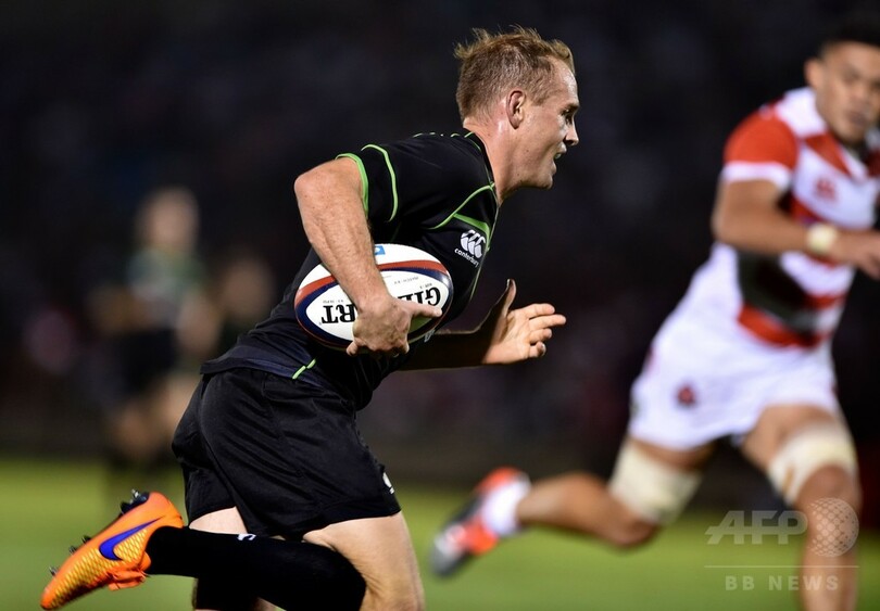 日本はその後、認定トライを奪ったものの、世界選抜のナイヤラボロは終盤に2つのトライを記録し、ハットトリックを達成した。(c)AFP