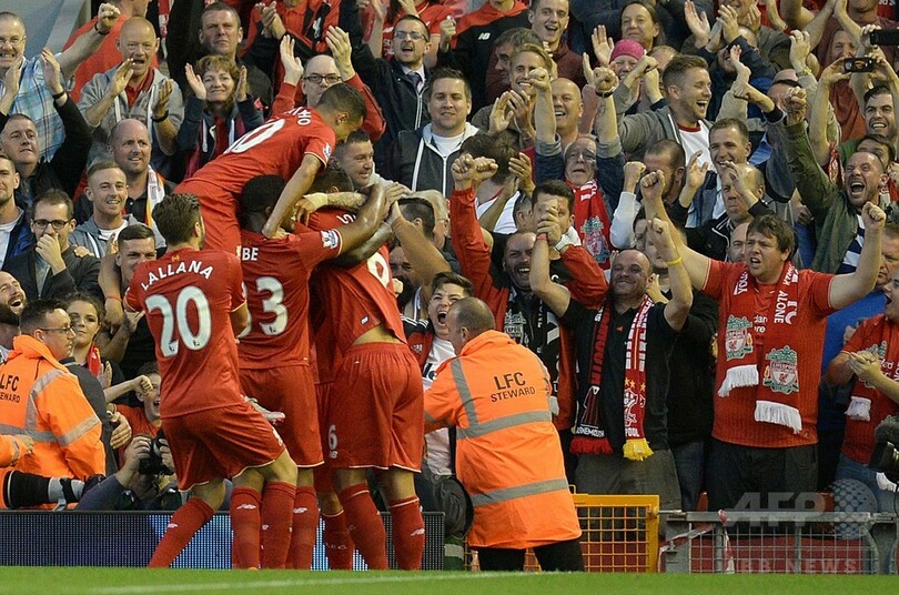 開幕節でも1-0でストーク・シティ(Stoke City)に勝利していたリバプールは、マンチェスター・シティ(Manchester City)、レスター・シティ(Leicester City)、マンチェスター・ユナイテッド(Manchester United)と並び、2試合を終えて勝ち点6を獲得している。(c)AFP/Tom WILLIAMS