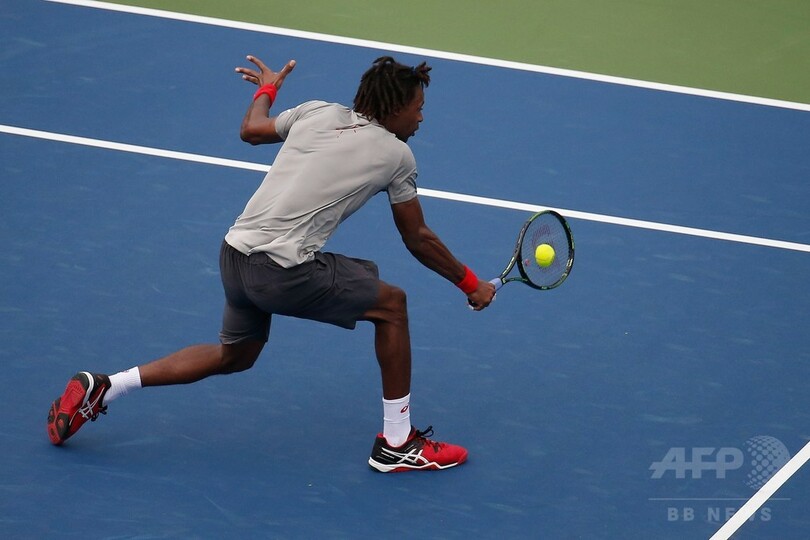 モンフィスは、驚くべきショットを繰り出すこともあれば、投げやりにエラーを犯すこともあるなど、奔放なプレーをすることで知られている。(c)AFP