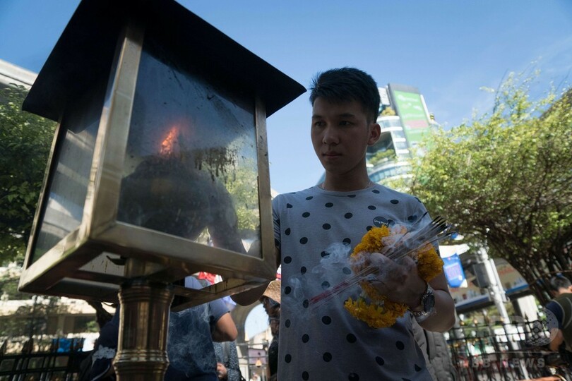 【8月19日 AFP】タイの首都バンコク(Bangkok)の繁華街で爆弾が爆発し20人が死亡した事件で、現場となったヒンズー教の祠(ほこら)「エラワン廟(びょう)」(Erawan Shrine)が19日午前、再開し、十数人の僧侶が訪れて祈りをささげた。