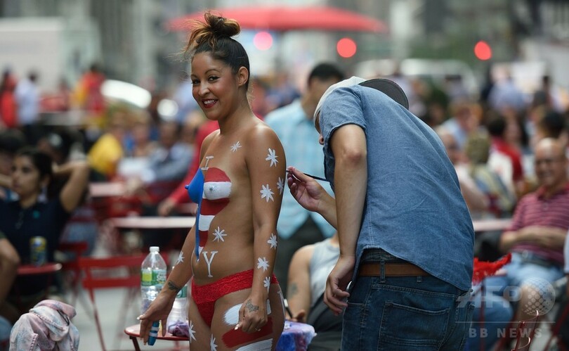 【8月20日 AFP】米ニューヨークのタイムズ・スクエア(Times Square)で18日、ボディーペインティングを施して観光客と写真を撮る女性らの姿が見られた。ビル・デブラシオ(Bill de Blasio)市長は、これらの女性を押しつけがましい物乞いと非難、観光客からお金を集める行為は取り締まるべきだとコメントした。(c)AFP
