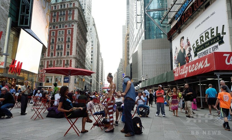【8月20日 AFP】米ニューヨークのタイムズ・スクエア(Times Square)で18日、ボディーペインティングを施して観光客と写真を撮る女性らの姿が見られた。ビル・デブラシオ(Bill de Blasio)市長は、これらの女性を押しつけがましい物乞いと非難、観光客からお金を集める行為は取り締まるべきだとコメントした。(c)AFP