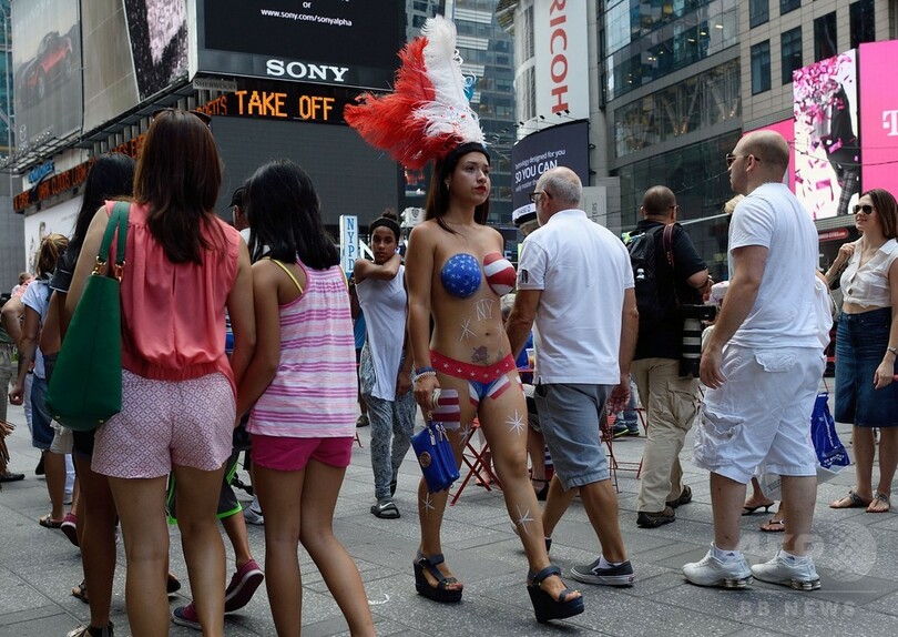 【8月20日 AFP】米ニューヨークのタイムズ・スクエア(Times Square)で18日、ボディーペインティングを施して観光客と写真を撮る女性らの姿が見られた。ビル・デブラシオ(Bill de Blasio)市長は、これらの女性を押しつけがましい物乞いと非難、観光客からお金を集める行為は取り締まるべきだとコメントした。(c)AFP