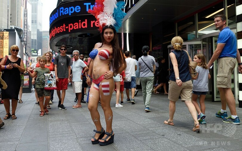 【8月20日 AFP】米ニューヨークのタイムズ・スクエア(Times Square)で18日、ボディーペインティングを施して観光客と写真を撮る女性らの姿が見られた。ビル・デブラシオ(Bill de Blasio)市長は、これらの女性を押しつけがましい物乞いと非難、観光客からお金を集める行為は取り締まるべきだとコメントした。(c)AFP