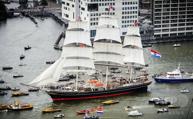 【8月21日 AFP】5年に1度の帆船祭り「セイル・アムステルダム(SAIL Amsterdam)」が19日、オランダ・アムステルダム(Amsterdam)で始まった。18世紀のフリゲート艦のレプリカや19世紀のフランスの商船、拷問に使われていたチリの船など、約50隻の歴史的な船が集結している。同日朝早くには大型帆船団が、西部エイマイデン(Ijmuiden)港から民間の小型船群を従え、アムステルダムに向けて出港した。フェスティバルにはレース用のヨットから軍艦まで、計600隻以上が参加予定で、主催者側は23日までの開催期間中に200万人の来場を見込んでいる。(c)AFP