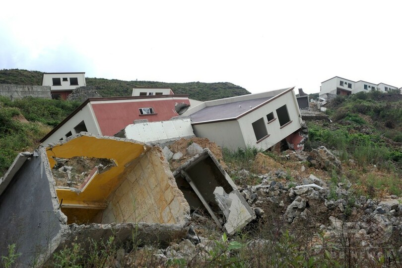 これまでのところ、住宅250戸のうち120戸が倒壊しており、この一帯は住宅地に不適として、家屋の取り壊しが近く実施される予定となっている。(c)AFP