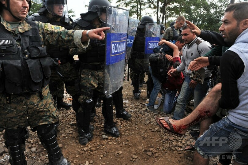 【8月22日 AFP】マケドニアの機動隊は21日、同国とギリシャ国境の中間地帯に足止めされた、シリア人中心の難民らに向けて閃光弾を発射するなどして、少なくとも8人が負傷した。欧州では難民問題が危機的状況に陥っている。
