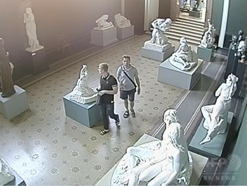 監視カメラの映像には、美術館の営業時間内に白昼堂々、2人が胸像を土台から持ち上げ、プラスチックの袋に入れた後に別のバッグの中に入れ、建物から出ていく姿が映し出されていた。また先月7日の映像には、同じ2人が美術館で警報機を停止させている様子が映し出されていたという。